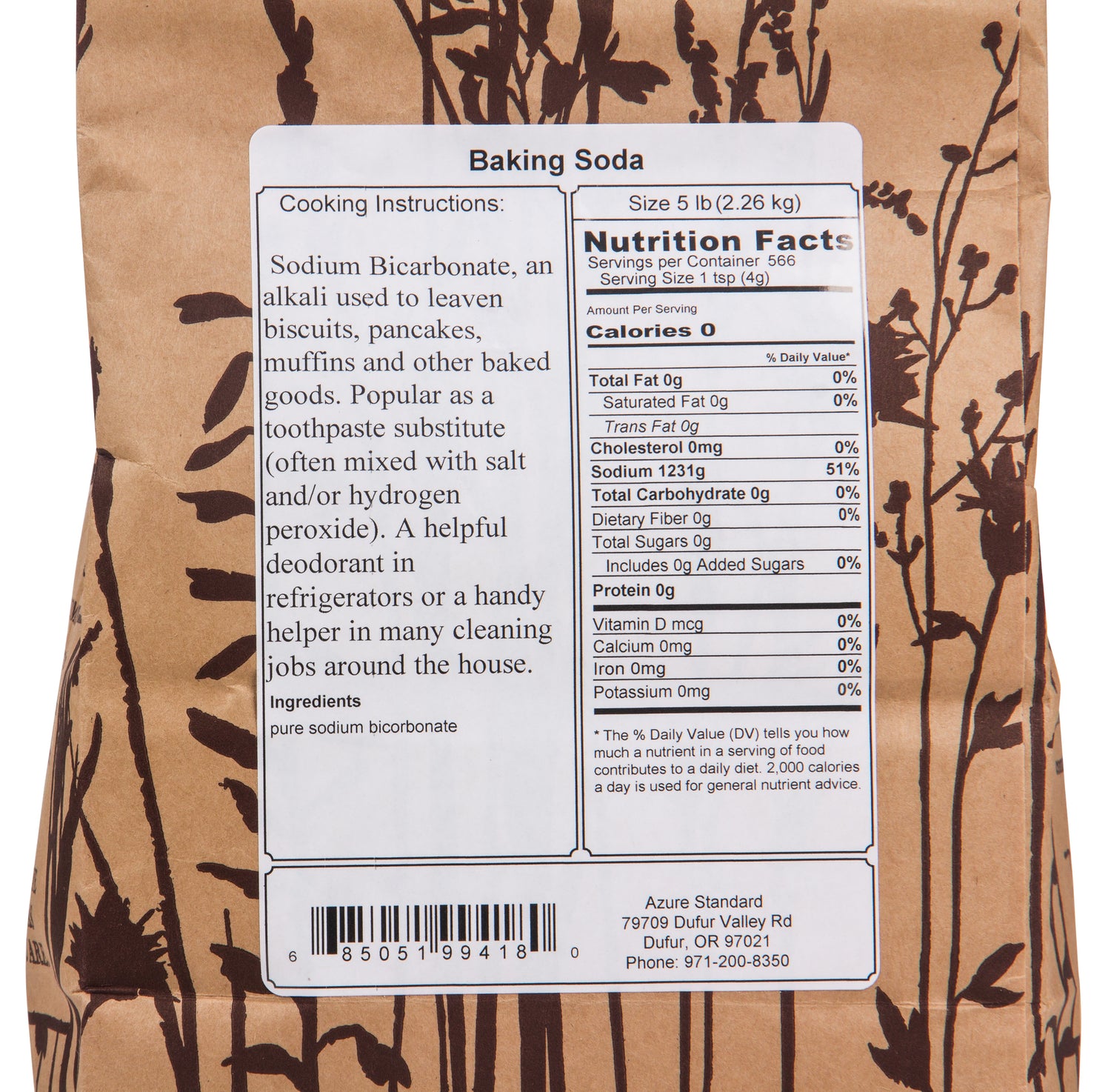 Azure Market baking soda, also known as sodium bicarbonate, is a must-have ingredient for any baker—but it’s so much more than that! It can also be used as a toothpaste substitute (often mixed with salt and/or hydrogen peroxide) and an odor remover in refrigerators, as well as an indispensable tool in a variety of household cleaning tasks. Try making a paste with baking soda and dish soap for cleaning your stovetop or other tough kitchen messes!