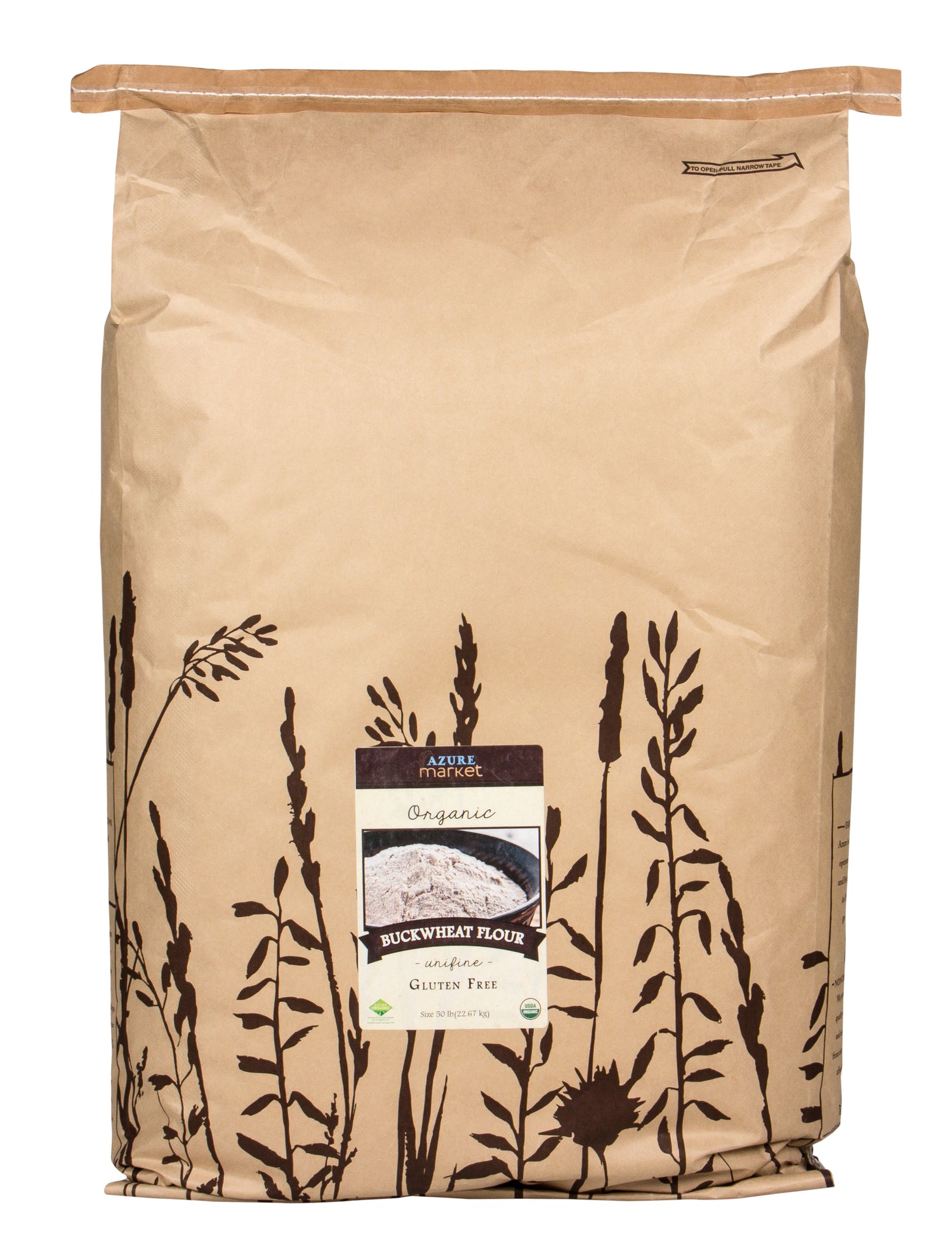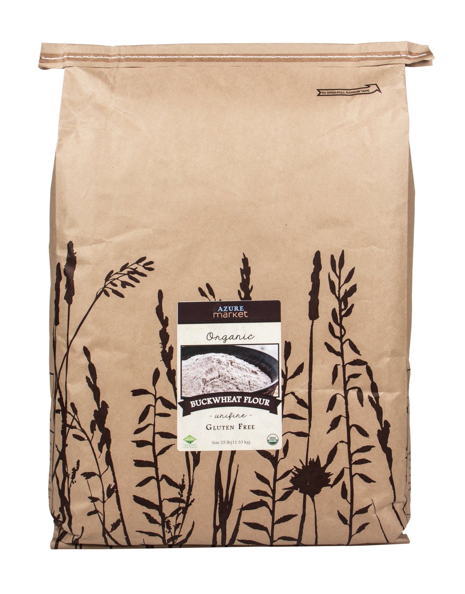 This Azure Market Organic quality Buckwheat is full flavored and a favorite addition to pancakes, waffles and muffins. Buckwheat Flour is milled from whole buckwheat with hulls and husk intact. The hulls add dark flex to the flour adding to the nutrients and wonderful flavor of this flour in your baked goods.